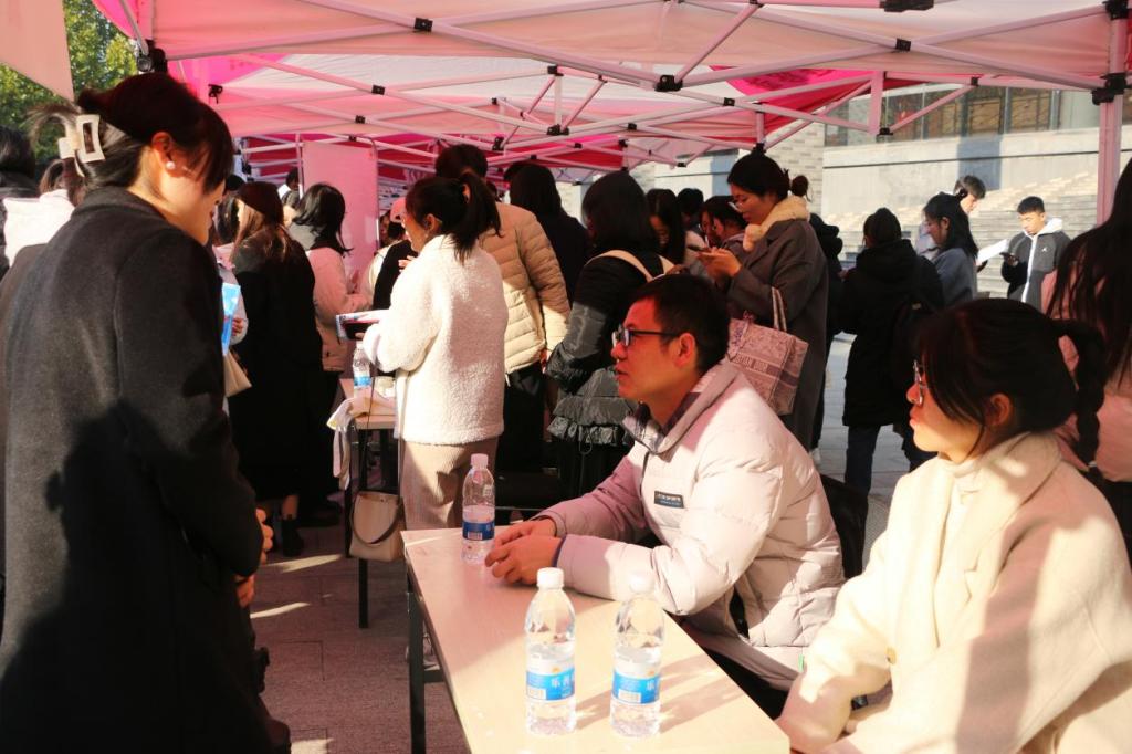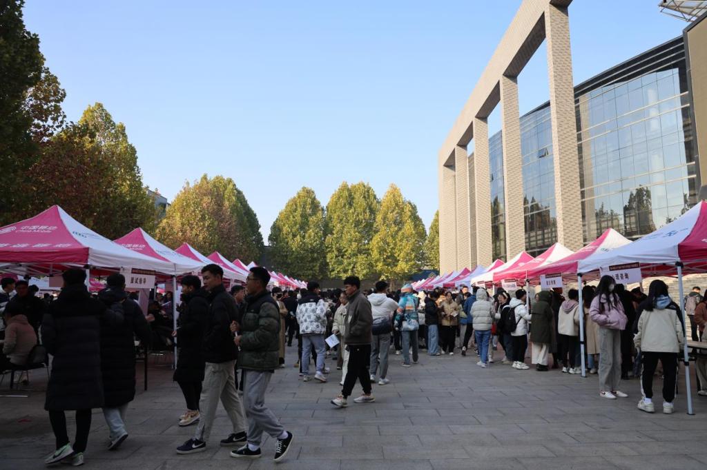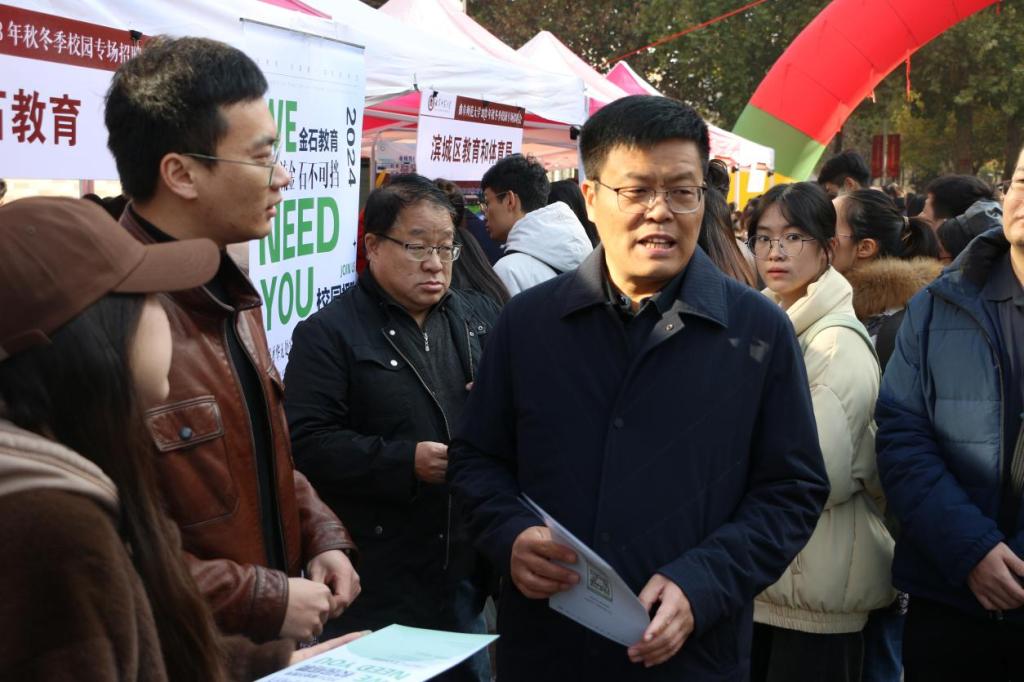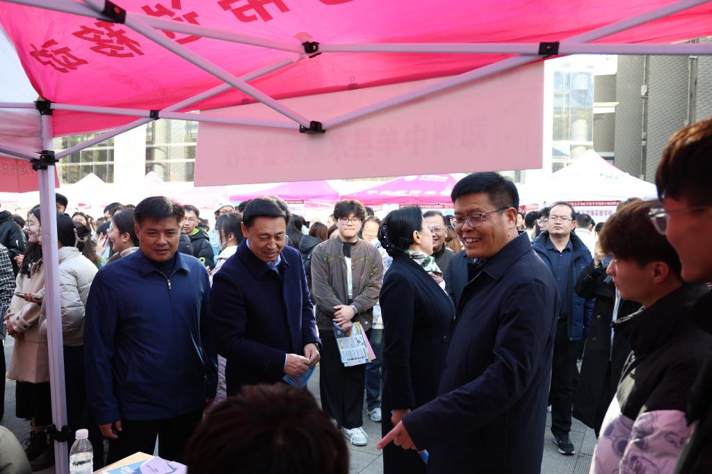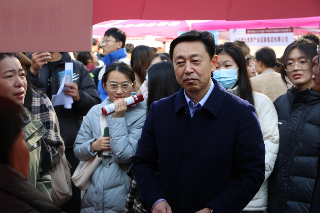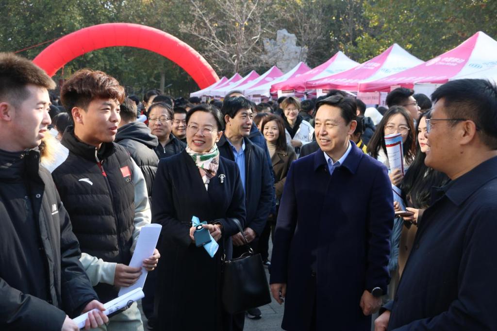 于曲阜校区明心扬帆广场联合举办曲阜师范大学2023年秋季校园专场招聘会。学校党委副书记、校长张洪海,学校党委副书记卢国强带队亲临现场。