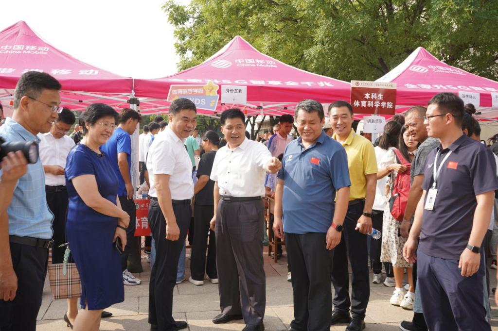 迎新报道点视察工作,详细询问新生报道情况,并对工作人员及学生志愿者表示慰问,对新生送上了关怀问候。