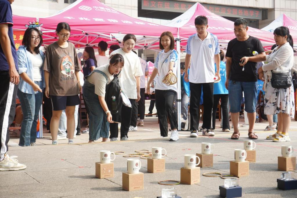 还在迎新现场设置孔子射艺展示点。一身飞鱼服,弯弓搭箭扬,现场新生跃跃欲试,争相体验射箭过程中所必备的姿态、礼仪,激发了学生学习优秀传统文化的兴趣和热情。