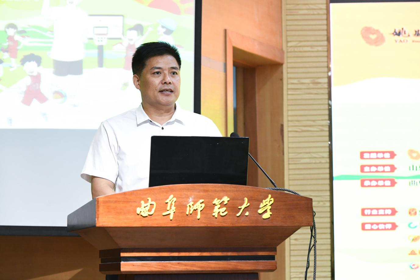 姚基金公益基金会项目主管欧敏向曲阜师范大学表示感谢,向2023姚基金希望小学篮球季曲阜师范大学的27名志愿者送上最亲切的问候和最衷心的祝福。她表示,国家对志愿服务和乡村支教越来越重视,体育将在青少年成长中扮演更为重要的角色,希望更多大学生投身到体育公益事业中去,向社会公众传递“以体育人”公益理念,树立青年一代的社会责任担当,为国家体教融合与乡村振兴注入青春力量。