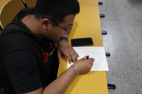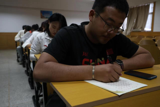 在比赛过程中选手们在规定时间内选用中性笔、钢笔书写书法作品,传承弘扬中华优秀文化、抒发爱国情怀以及传递积极向上的时代精神,展现出当代体育教育专业师范生的写字技能。