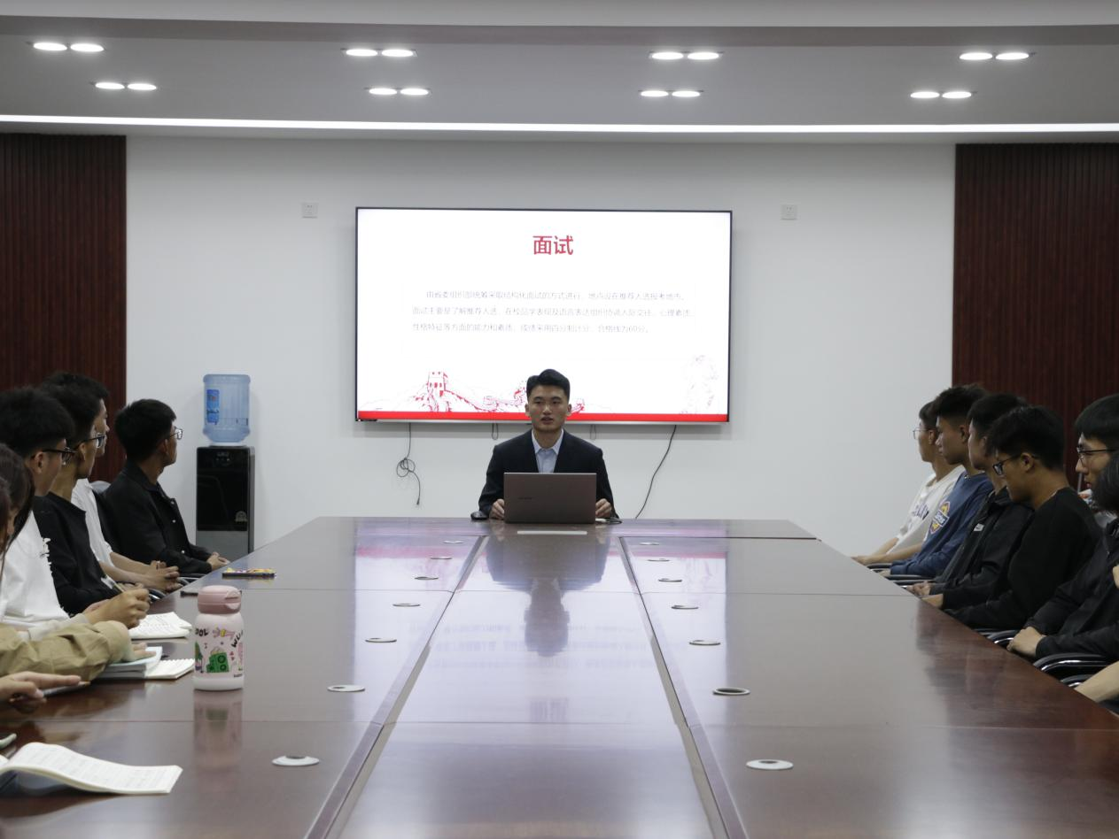 举办选调生经验分享会。本次培训邀请到山东省2023年拔尖选调生王浩宇担任主讲人,2020级、2021级和2022级有意向学生参加,会议由2019级辅导员唐海峰主持。