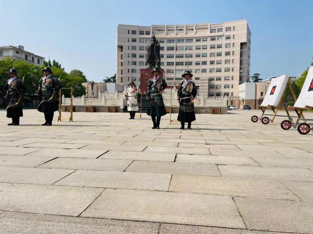 团委孔子射艺发展办公室表演的五人箭阵,以传统文化展演对来访领导的表示热烈欢迎。
