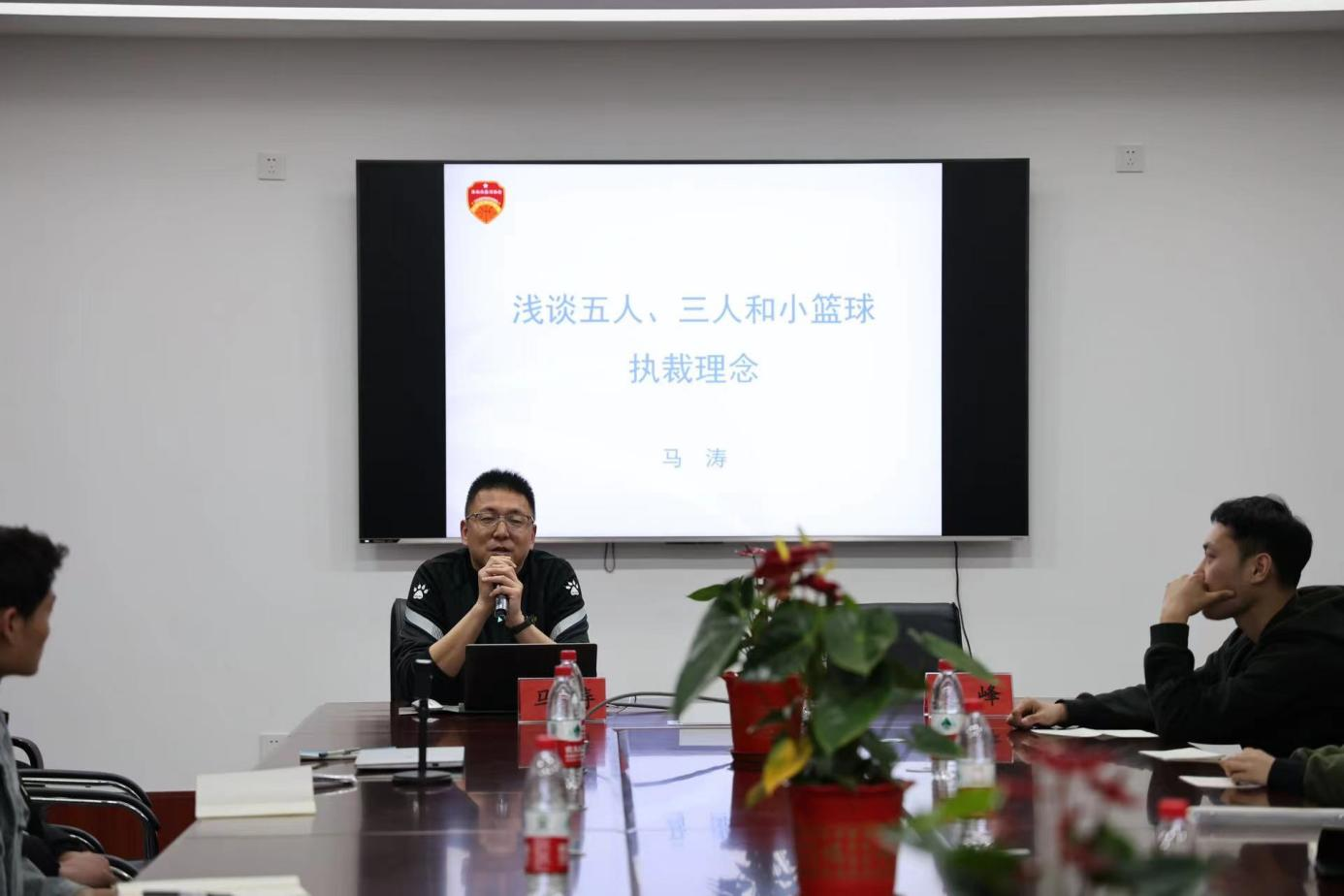 本次培训,马涛围绕五人、三人和小篮球执裁理念,对篮球裁判规则、犯规的定义、执裁过程中容易出现的问题进行了讲解,结合国际比赛中的具体案例,对犯规吹罚进行讲解。之后带领同学们研究三人篮球项目特点,引导同学们身临其境进行执裁。本次培训让参与同学对于篮球裁判员执裁理念有了更深的认识,掌握了更多篮球裁判员方面的知识,进一步提高了同学们的执裁水平。