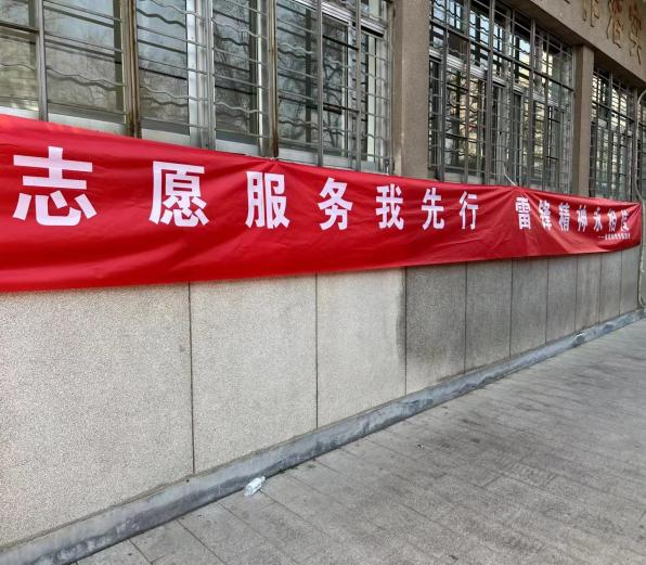 积极响应,通过拉横幅、立展板等方式营造雷锋精神氛围、做好大学生学雷锋活动准备工作,鼓励同学们传承弘扬雷锋精神、积极开展志愿服务。