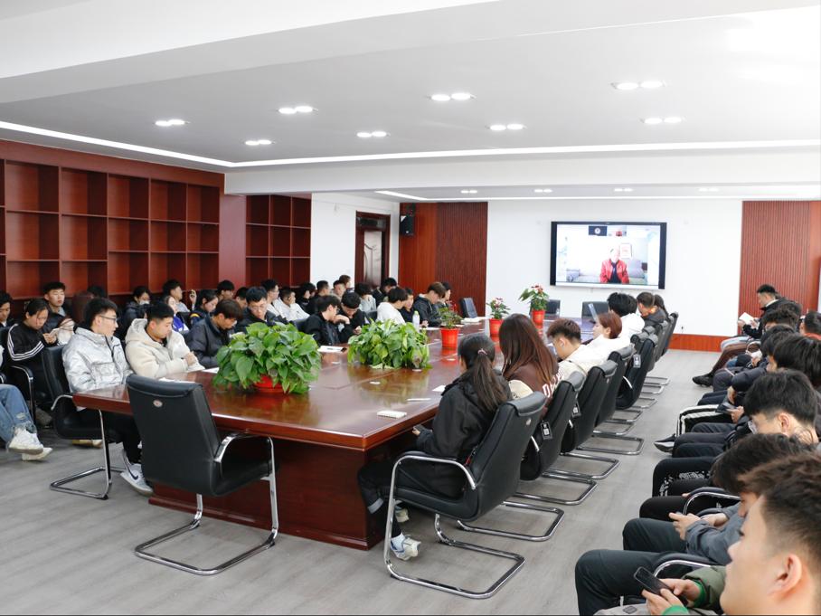 会议室顺利开展。辅导员唐海峰、栾永鑫及全体学生干部参加。