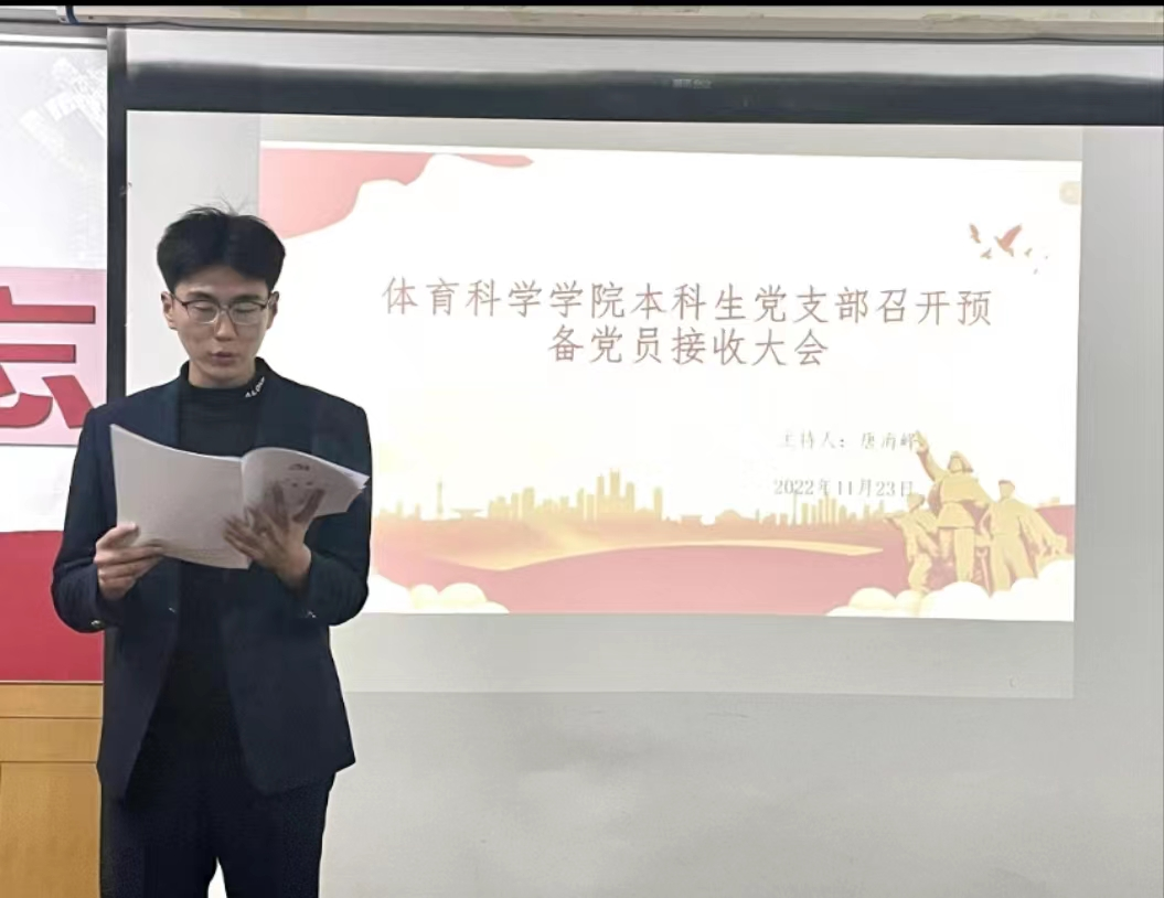 本科生党支部于系楼109召开预备党员接收大会,本次会议由党支部书记唐海峰主持,党委副书记马振华书记莅临指导,本科生党支部全体党员参加。会议讨论发展对象纪文程、周啸雨等18同志的入党问题。