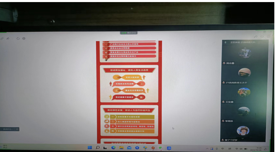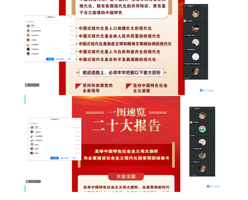 10月25日,曲阜师范大学体育科学学院团委组织各团支部团员通过线上会议、谈学习心得等多种形式学习中国共产党第二十次全国代表大会报告,会议由各团支部团支书组织进行。