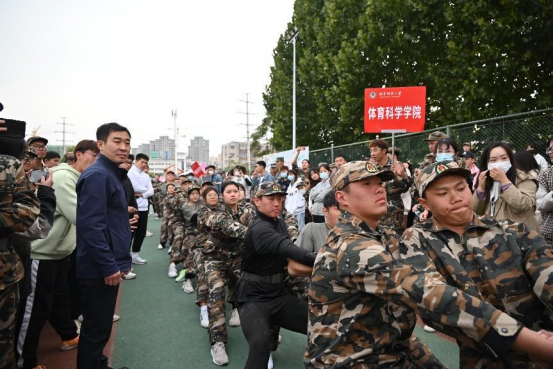 我院领导老师高度重视此次比赛,体育学部党委副书记马振华、辅导员唐海峰、栾永鑫、王冰、郗来军、周晗亲临现场,为参赛的队伍加油打气。