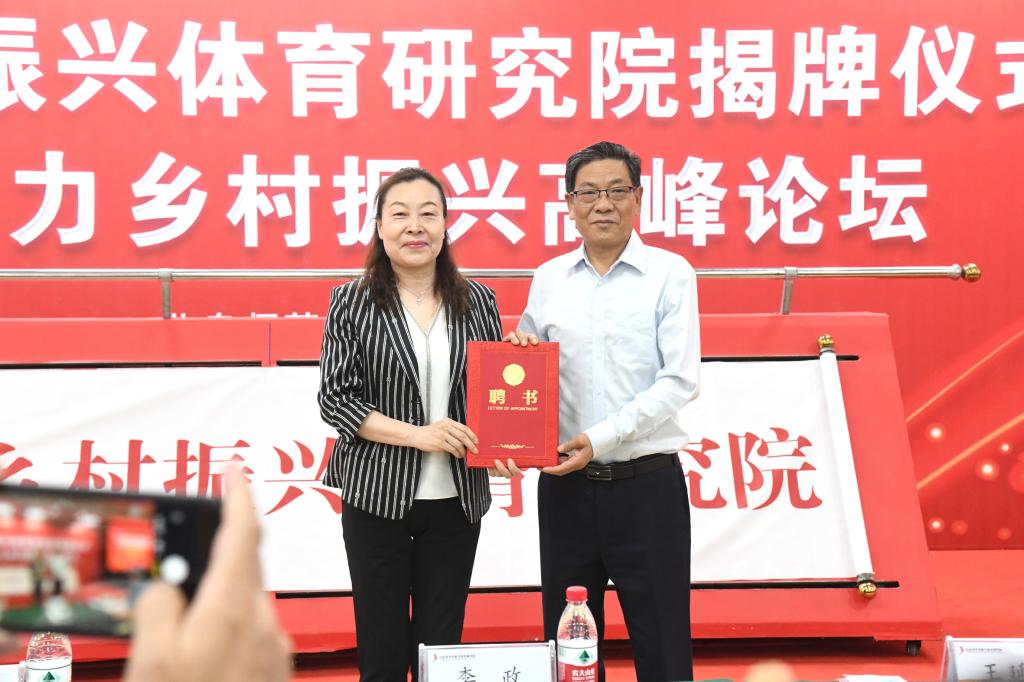 曹莉教授颁发“山东省乡村振兴体育研究院”院长聘书。