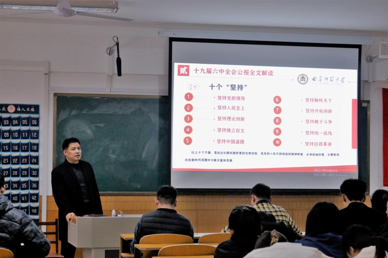 本科生党支部于2021年12月22日在系楼110教室开展了以十九届六中全会为主题的思政大课堂。