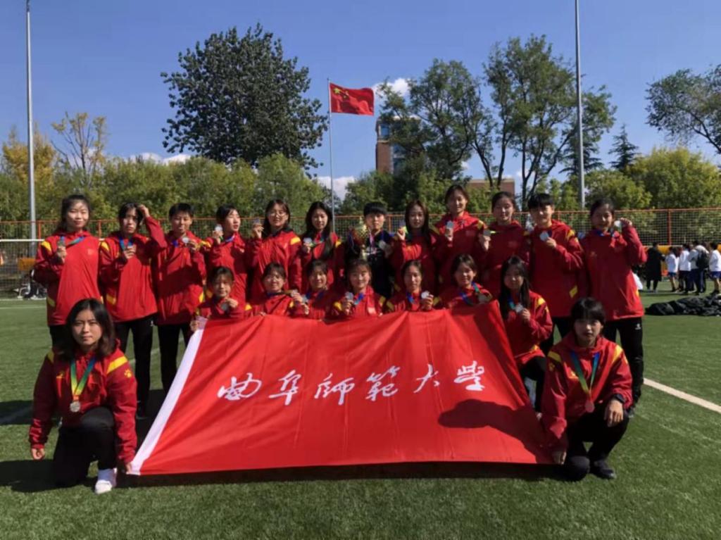 10月18日-22日,山东省第十六届大学生运动会足球比赛在潍坊鲁能泰山足球学校举行,曲阜师范大学女子足球队赛前刻苦训练,比赛中敢打敢拼,最终取得了亚军的好成绩。