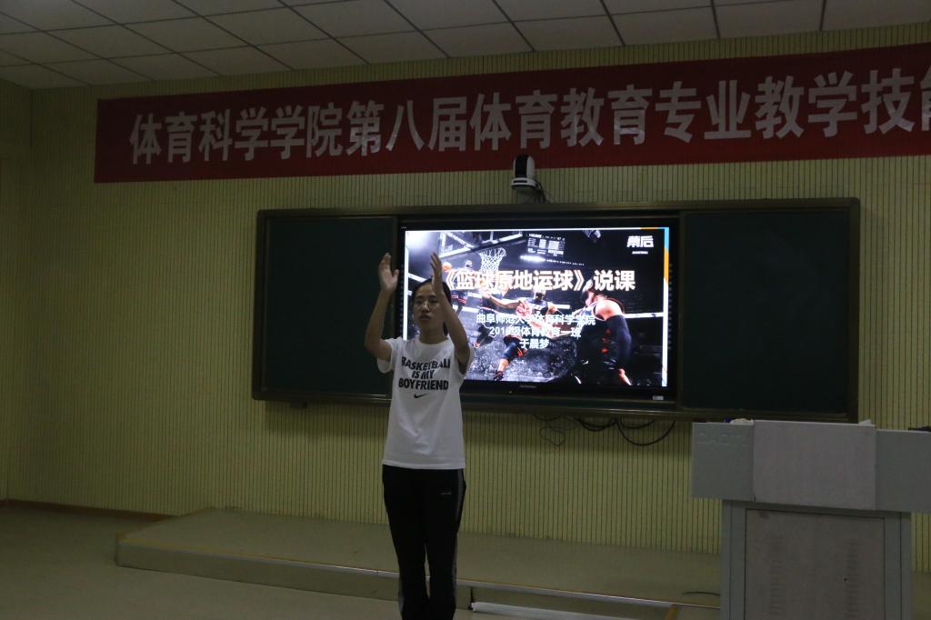 本次大赛分说课与试讲两大模块,参赛选手全部由2016级体育教育专业学生组成,参赛内容涉及到田径、球类、武术、体操等项目。参加比赛的学生通过对项目具体一个方面进行详细的讲解,思路清晰,口令准确,场上表现非常自如,得到了评委的一致好评。评委老师针对同学们的表现,提出了关于教案、教学仪态及教学技巧的相关建议。最后由现场的六位评委针对选手打分,王宾鸿、刘盼盼获得了本次大赛的一等奖,并将代表8波比分