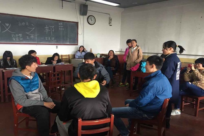 404教室举行第一届“礼仪之邦”知识竞赛。出席本次活动的有学生会副主席赵倩、女生部部长胡月、女生部主要成员及参赛选手,女生部部长胡月及副部长赵迪等人作为本次竞赛的评委。