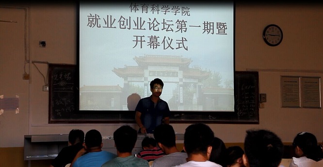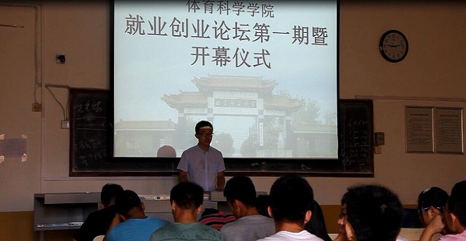 于6月27日上午9:00在209教室举办第一期就业创业论坛,本期特别邀请了2015届顺利就业的四位毕业生代表,他们是2011级体育教育专业的齐文超、聂成鑫和王玮,2011级舞蹈学(体育)专业的刘根,本次活动由孙业飞主持。