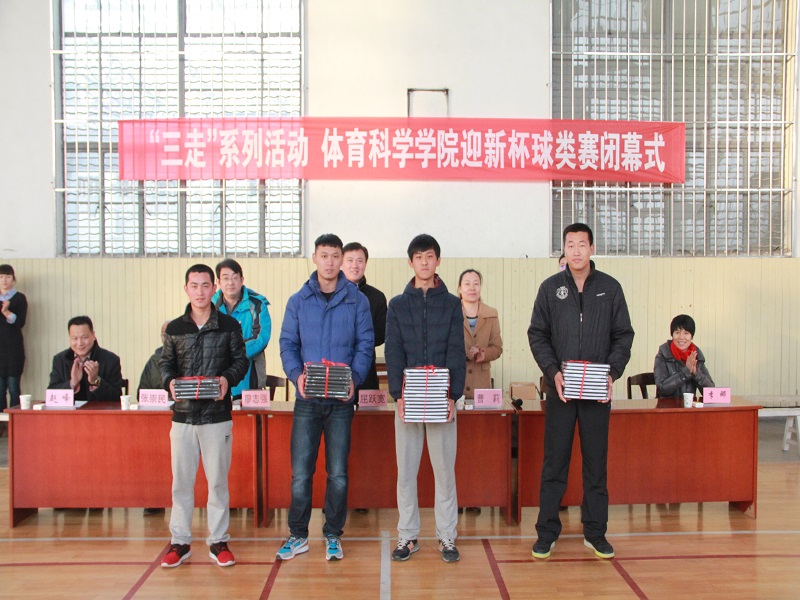 于篮球馆举办“三走”系列活动迎新杯球类赛闭幕式。出席本次会议的有我校团委书记屈跃宽,8波比分