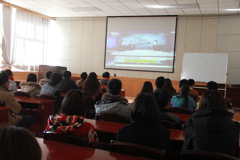 学生会成员及部分学生观看直播《南京大屠杀死难者国家公祭日》。