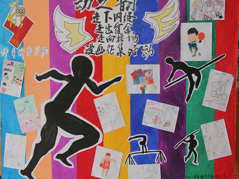 宣传部承办的面向全院学生的“动之韵”漫画征集活动圆满完成,宣传部在体科院大厅展板上展示同学们的优秀作品。