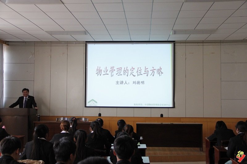 本堂课由山东明德物业管理有限公司董事长刘徳明先生进行讲授。课上,刘董事长首先借同学们的疑问讲述了办“明德班”的目的,刘董告诉同学们加入“明德班”只为让同学们在校时多一种技能,就业时多一份选择,并且就目前物流管理的就业和市场给同学们做了简要分析。随后,刘董事长给同学们作了一场题为《物业管理的定位与方略》的报告,报告中刘董结合自身创业经验和心得就“选择比努力重要,经营比管理重要,战略比战术重要”三方面的内容跟在场的同学们进行了阐述。同时,刘董还用丰富的案例和深入浅出的语言跟同学们讲解了物业管理方面的专业知识。最后,刘董特地为同学们留出了小部分的时间,现场解答同学们的疑问。历时两个多小时的授课不知不觉就结束了,课后同学们纷纷表示经过这一堂课的学习对物业管理也有了比较清晰的认识,同时也领略到了优秀企业家的风采和气质。