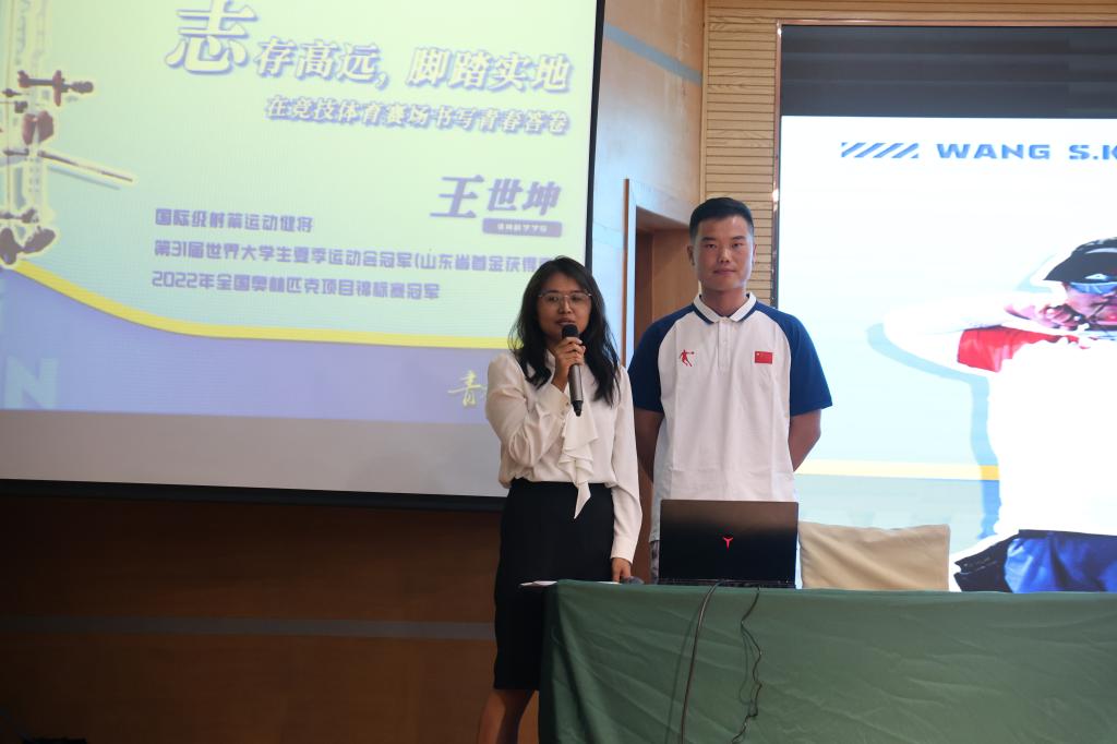 王世坤以朴实的话语,真挚的情感向全体同学们分享了自己求学、参训、夺冠的经历,他面对伤病、不屈不挠的人生态度和知难而进、永不放弃的拼搏精神深深激励着同学们。