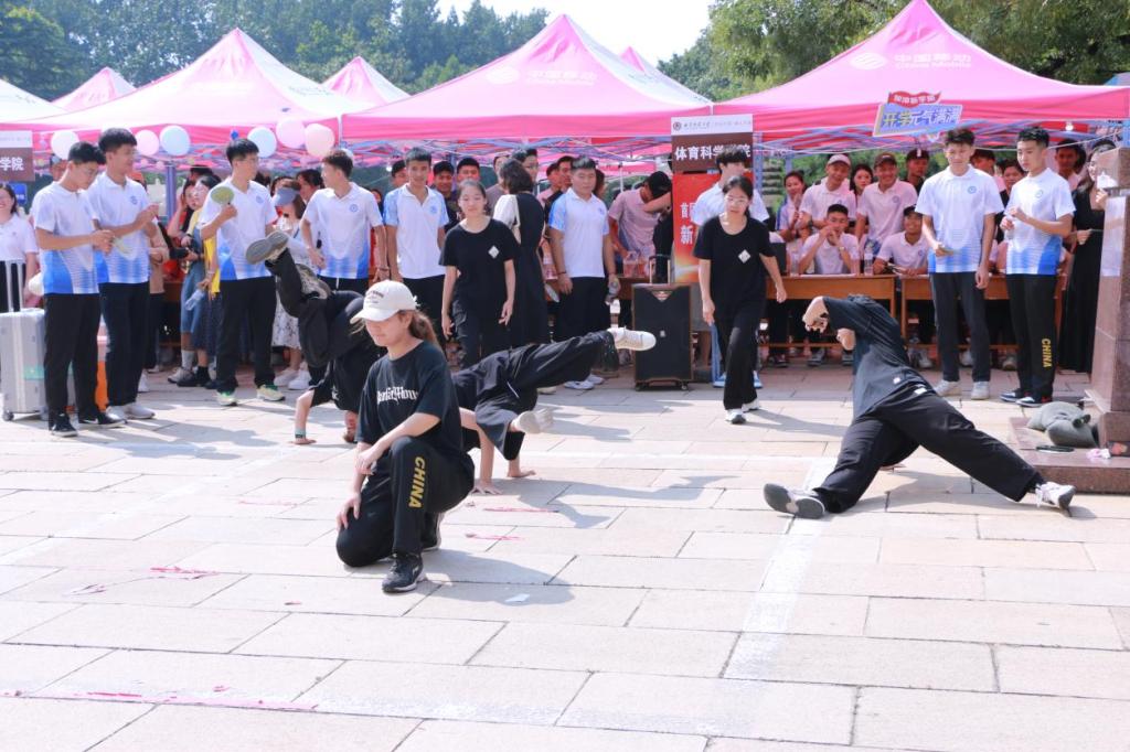 各个社团,设置了孔子射艺展示点,并进行了中华传统武术表演以及轮滑、舞蹈等节目表演,现场吸引了大批新生前来学习、观看并参与其中。