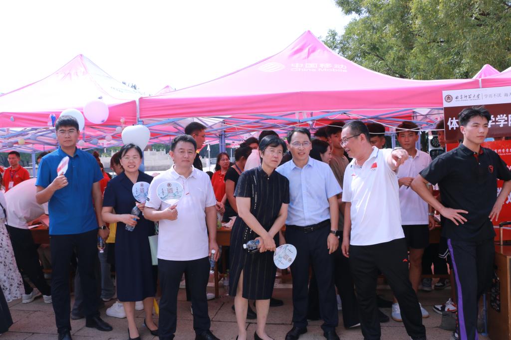 迎新报到点视察工作,详细询问新生报到情况,并对工作人员及学生志愿者表示慰问,对新生送上了关怀问候。