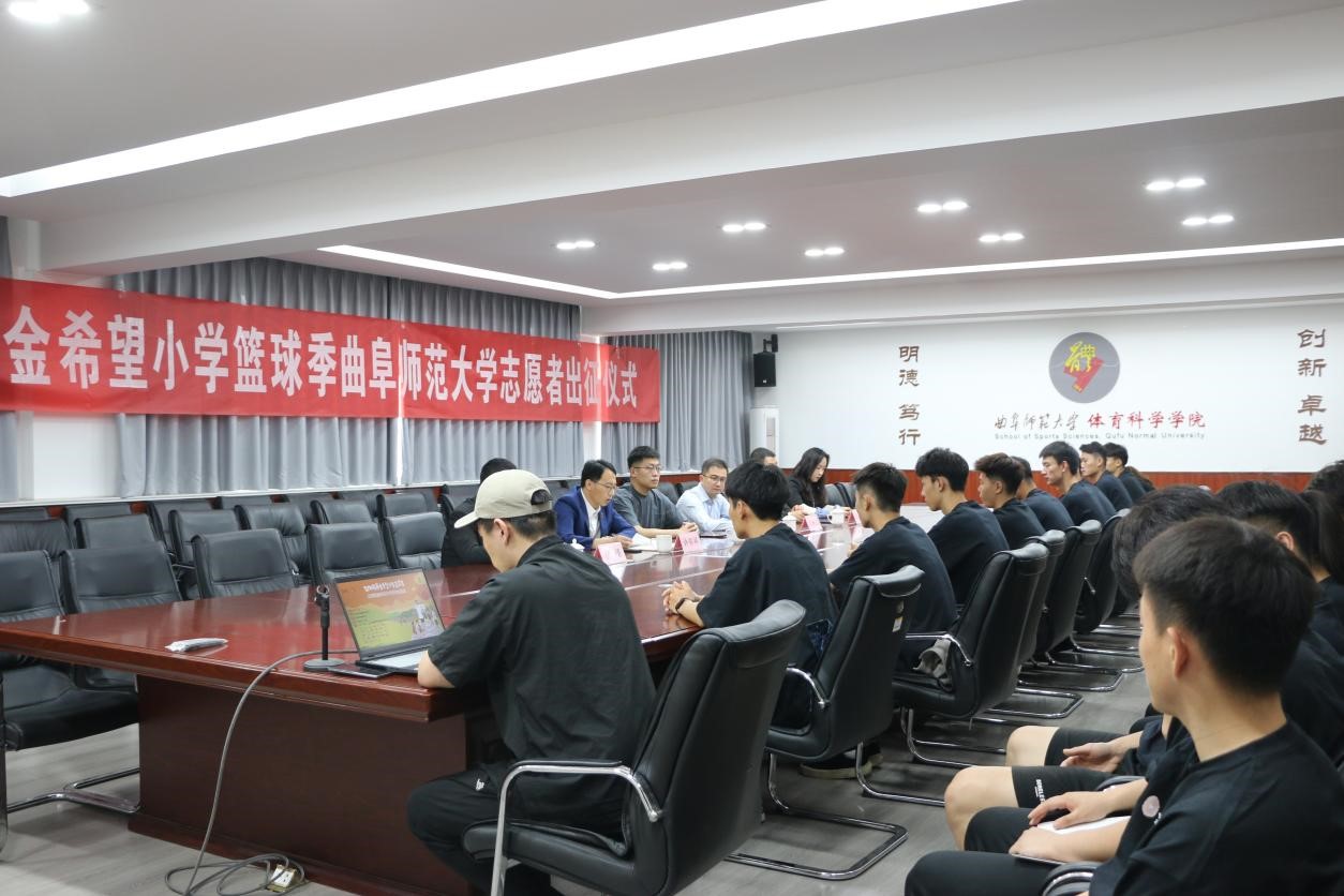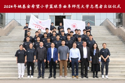 举行2024姚基金希望小学篮球季山东赛区曲阜师范大学支教志愿者出征仪式,姚基金希望小学篮球季项目执行杨力源、曲阜师范大学团委书记孔轶众、体育学部党委书记许怀祥、体育学部党委副书记马振华、 8波足球比分