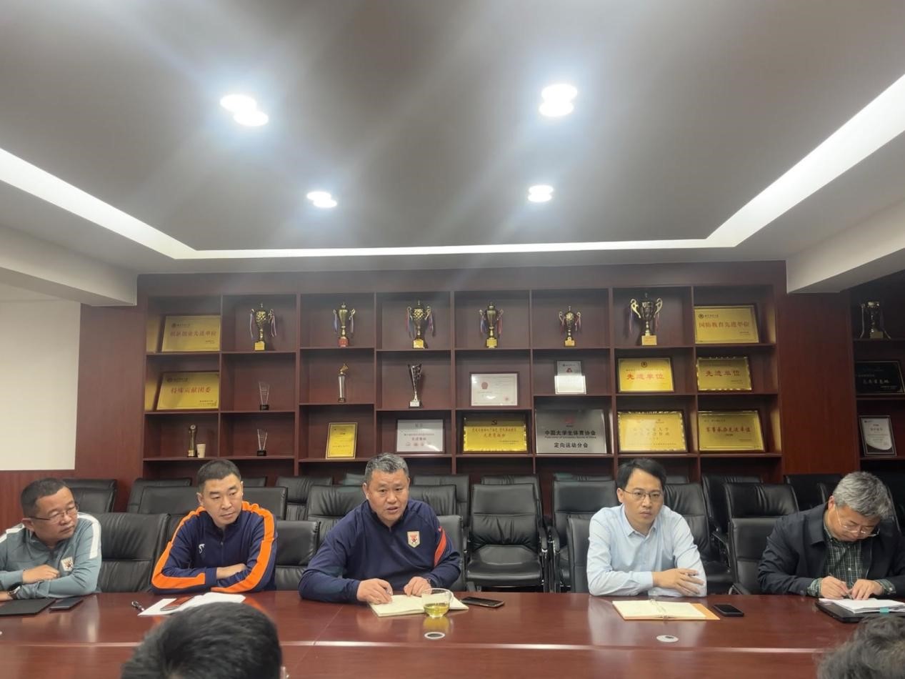 2024年4月12日,学校党委副书记、校长张洪海,教务处处长李傅山,党委办公室、学校办公室副主任鞠海彦一行莅临体育学部调研指导。体育学部党委书记许怀祥,体育学部主任兼8波足球比分