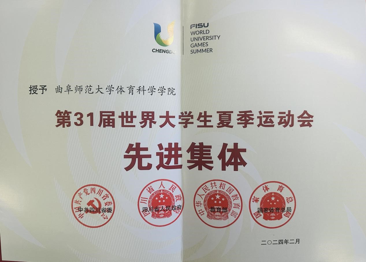 荣获“第31届世界大学生夏季运动会先进集体”表彰。