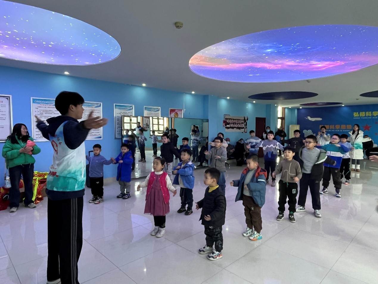 为了激发孩子们的兴趣,同时更好的表现出中华传统武术的魅力与深奥,实践队员们首先进行了一段高难度的武术表演。在孩子们表现出浓厚的兴趣后,实践队员们向孩子们讲解了中华武术的起源与发展,中华武术的基础理论知识。在孩子们对武术的基础知识有了一定的了解之后,队员们决定向孩子们教授两项武术基本功:五步拳和呼吸法。示范队员向孩子详细的解释了每个动作的关键要领和原因。同时实践队员们也对动作不规范的小朋友进行了纠正,确保每个孩子都能正确完成所有的动作。