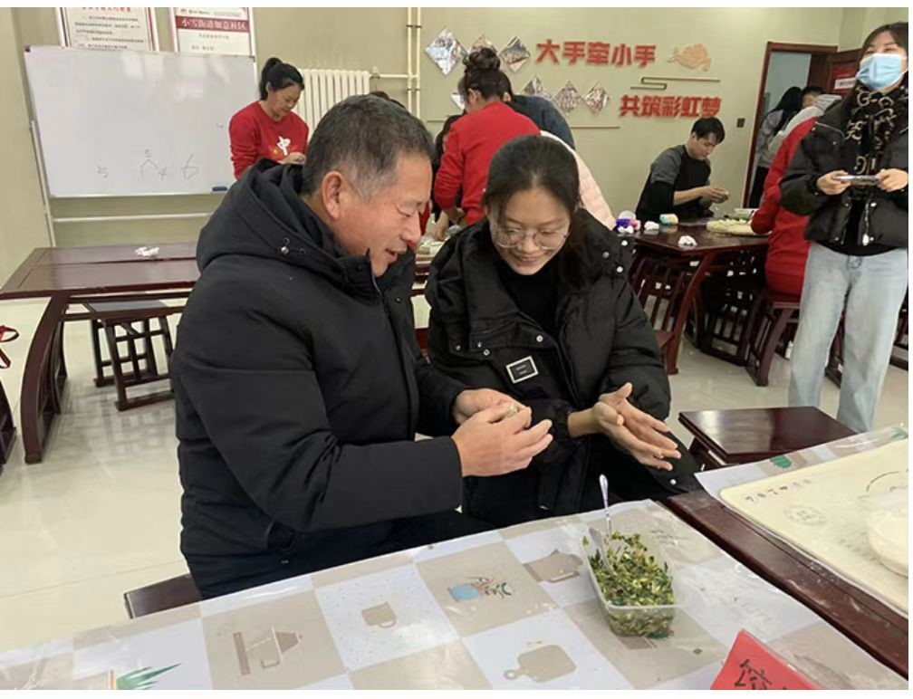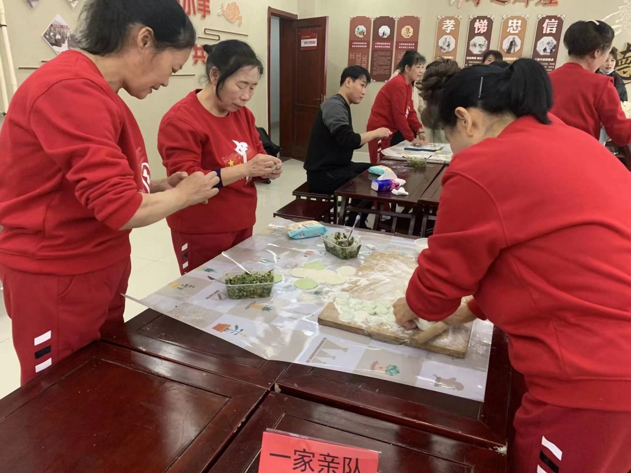 随后,在社区工作者的组织下,实践队队员与老人们一起开始了包饺子的活动。老党员们有的熟练地捏起饺子皮,有的认真地包起馅料,有的则在一旁给我们年轻人传授包饺子的技巧。大家一边包饺子,一边聊天笑语,气氛非常融洽。