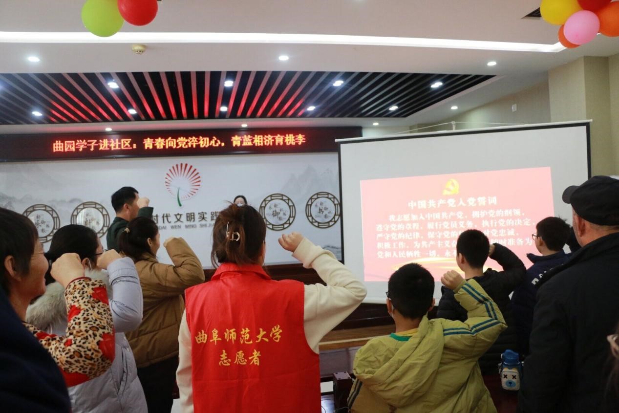 “青春向党淬初心,青蓝相济育桃李”社会实践队前往山东省曲阜市小雪街道如意社区进行社会实践调研工作,以习近平新时代中国特色社会主义思想为指导实施红色文化传承弘扬工程,深化党的创新理论学习和党史研究宣传,努力为党的理论宣传和研究阐释工作作出新的更大贡献。