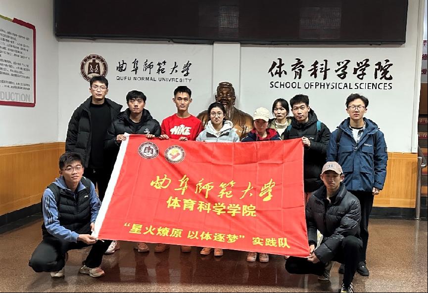图为“星火燎原,以体逐梦”实践队全体成员在体育楼大厅展开出征仪式。朱承彬 摄