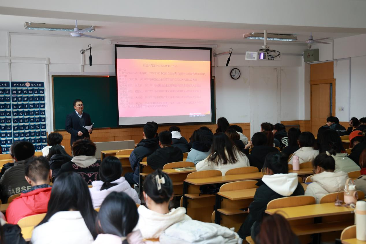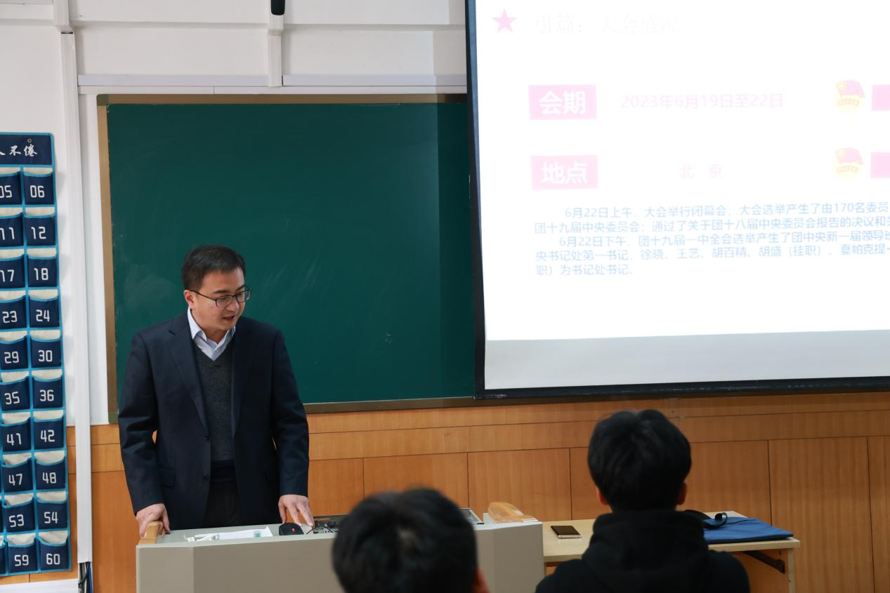 “青马工程”大学生骨干了解团十九大大会盛况并回顾历届共青团中央书记处第一书记的光辉伟绩,总结经验、理解历史。孔轶众从“习近平总书记对青年一代的高度重视和殷切关怀”“习近平总书记关于青年工作的重要思想和实践要求”“党的十八大以来青少年和共青团事业的发展成就和根本原因”“新时代中国青年运动的时代主题和历史使命”“新时代青年成长的难得际遇和光明前景”“共青团改革发展的时代要求”等六个方面展开授课,希望同学们始终保持蓬勃向上的青春朝气, 始终向往和追求马克思主义的美好前景, 始终拥护和参与马克思主义在中国的伟大实践, 做有理想、敢担当、能吃苦、肯奋斗的新时代好青年,做新时代坚定有为的青年马克思主义者。