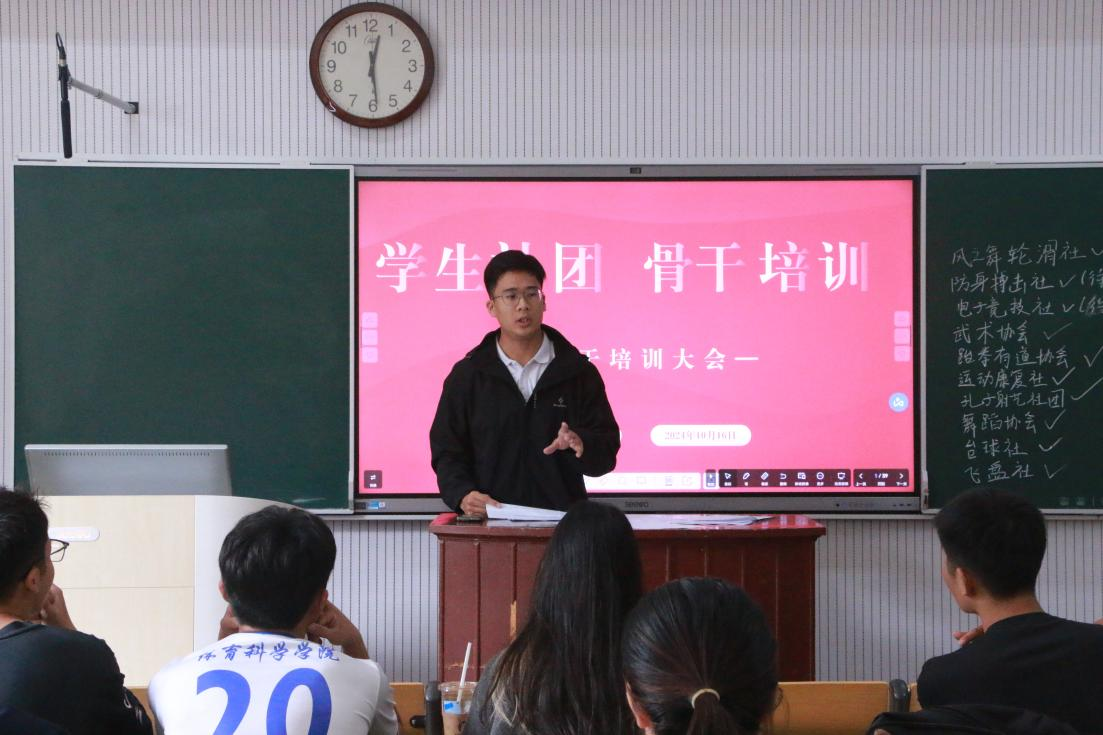 210教室召开社团骨干培训大会。此次会议由体育科学学院学生会副主席兼社团管理部部长战良厚主持。