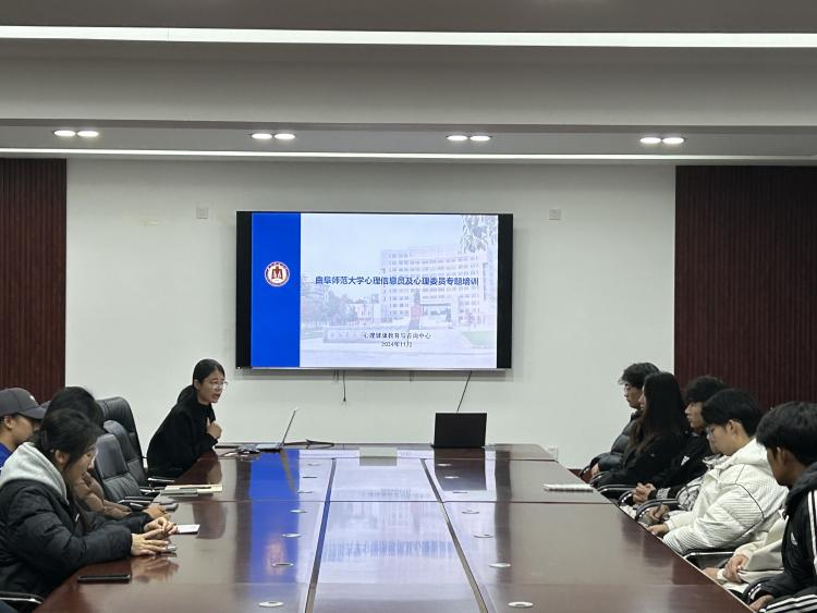心理辅导员王冰在一楼会议室开展班级心理委员和宿舍心理信息员培训,全体心理委员和心理信息员参加培训。