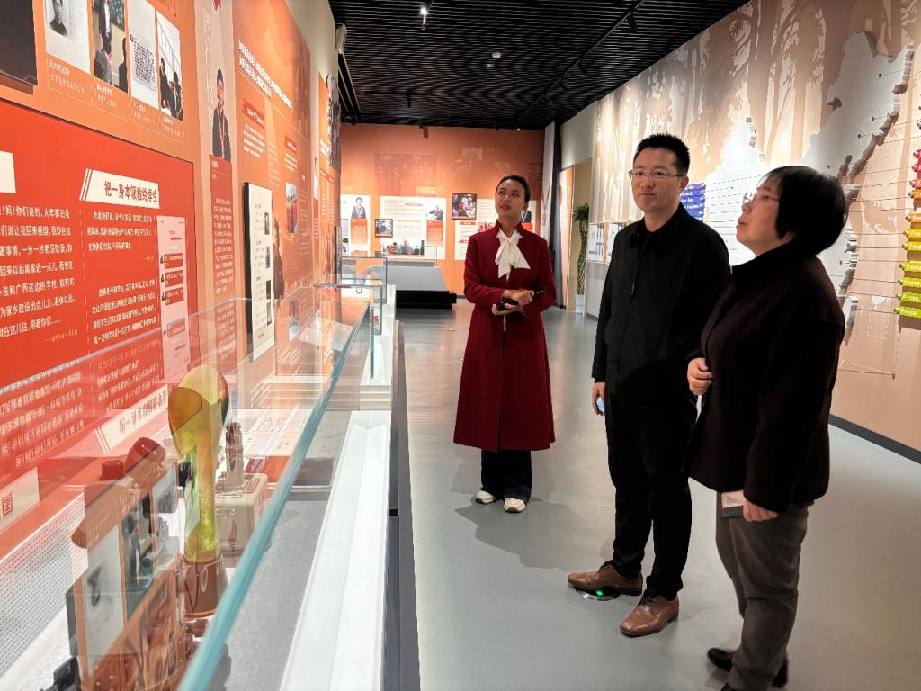 活动伊始,孙祥广陪同高淑贞参观了中国教师博物馆,并重点介绍了黄大年雕像设计及展台的布展情况及规划方案。高淑贞看到黄大年生前使用过的科研仪器、采集的岩石样本等展品得到良好的保护与传承,她非常感谢中国教师博物馆精心打造的具有感染力的黄大年雕像和展台,宛如一座不朽的精神灯塔,生动还原了黄大年胸怀国之大者的昂扬姿态。其丰富详实的事迹陈列,让他的科研征程与崇高的精神境界清晰呈现在世人眼前,使得黄大年的形象更加鲜活立体,不仅能让教育界同仁们深受触动与鼓舞,更在广大青年学子心中种下了报国奉献的种子。