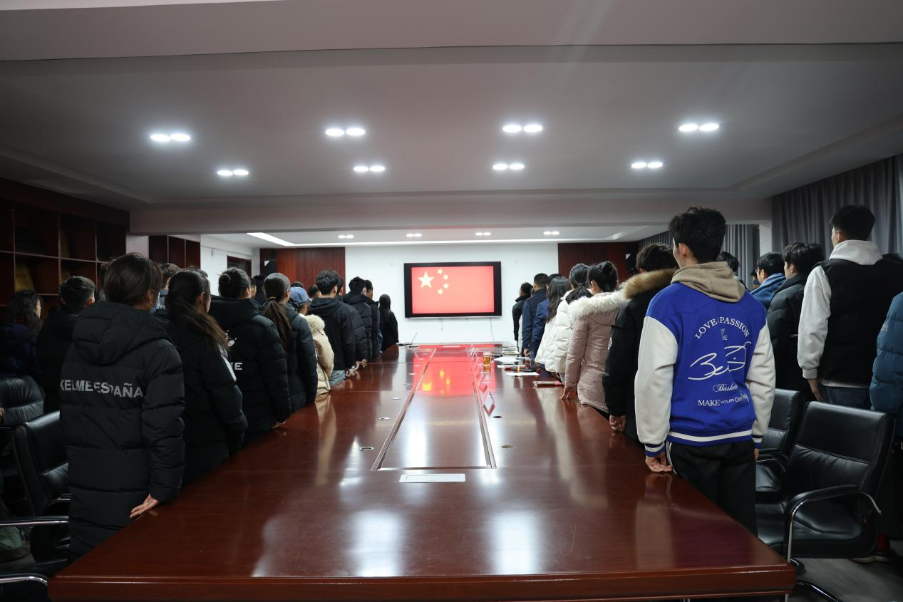 会议伊始,全体起立、奏唱国歌。