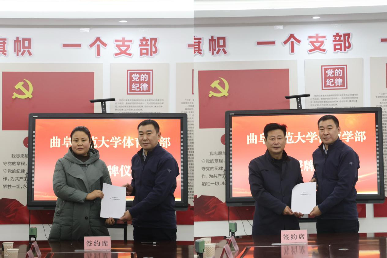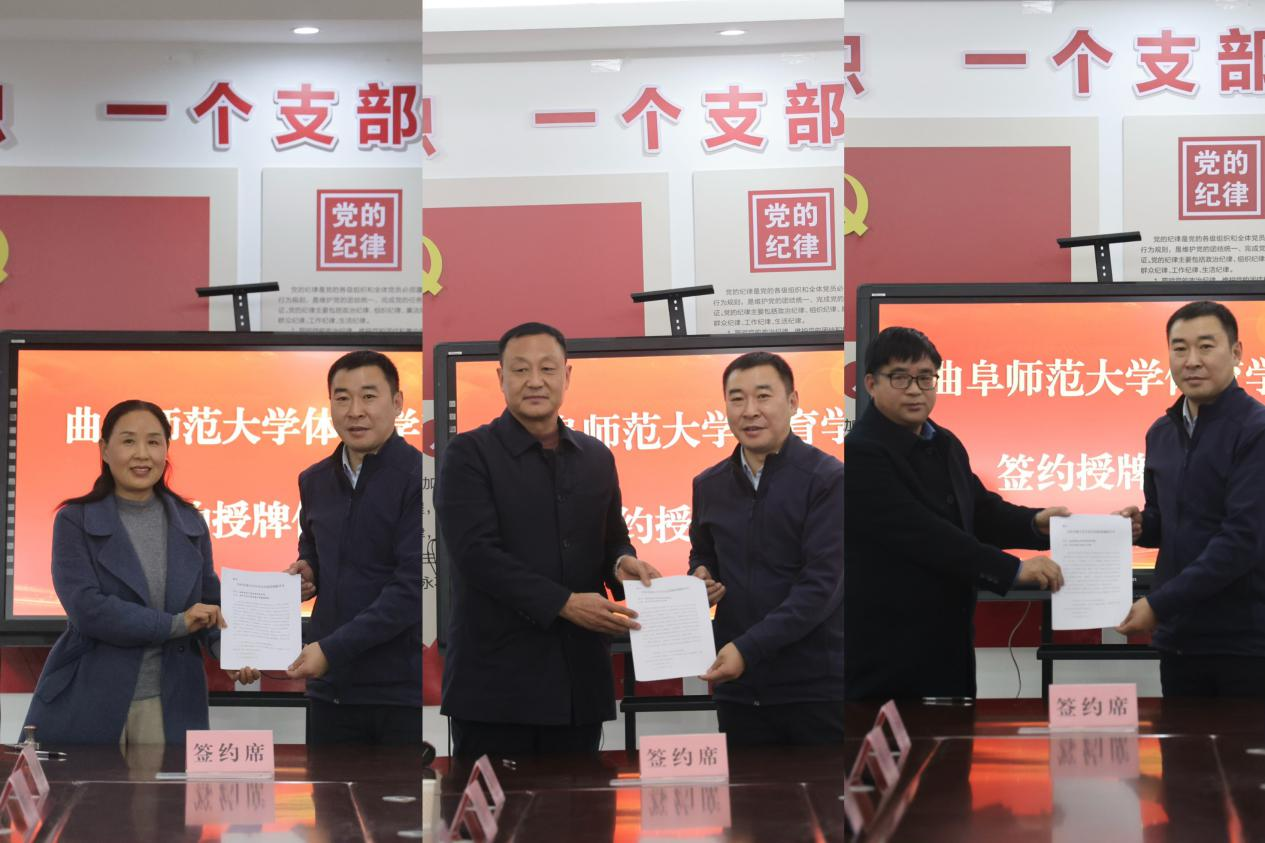 与济宁市金乡县8所学校举行“学生就业基地”“教育实习基地”“大学生社会实践基地”签约暨授牌仪式。金乡县教体局党组书记、局长刘宗占,县教体局党组成员、副局长吴鲁梁,体育学部党委书记许怀祥,体育学部党委副书记马振华,8波足球比分