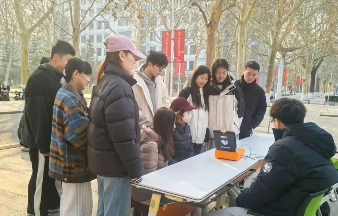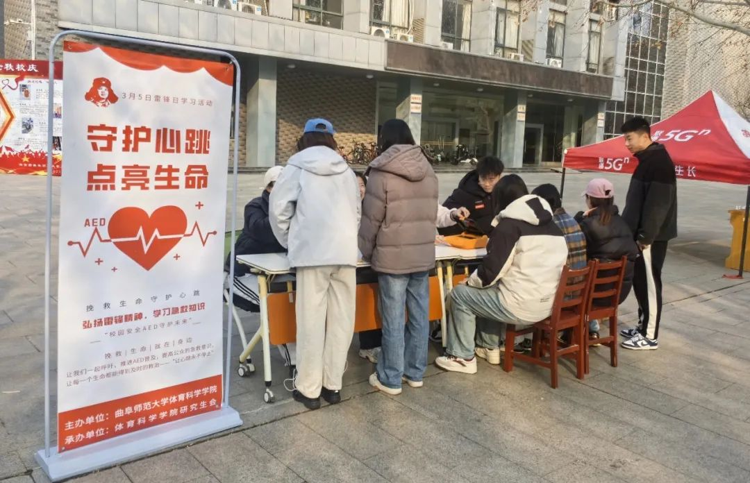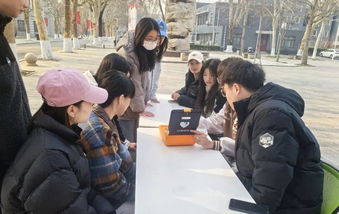 的研究生们在大学生活动中心门口开展了一场意义非凡的AED心肺复苏培训活动。此次活动正值雷锋活动月期间,旨在传承雷锋精神,提高广大师生的急救意识,普及心肺复苏及自动体外除颤仪(AED)的正确使用方法,为校园安全增添一份有力保障。