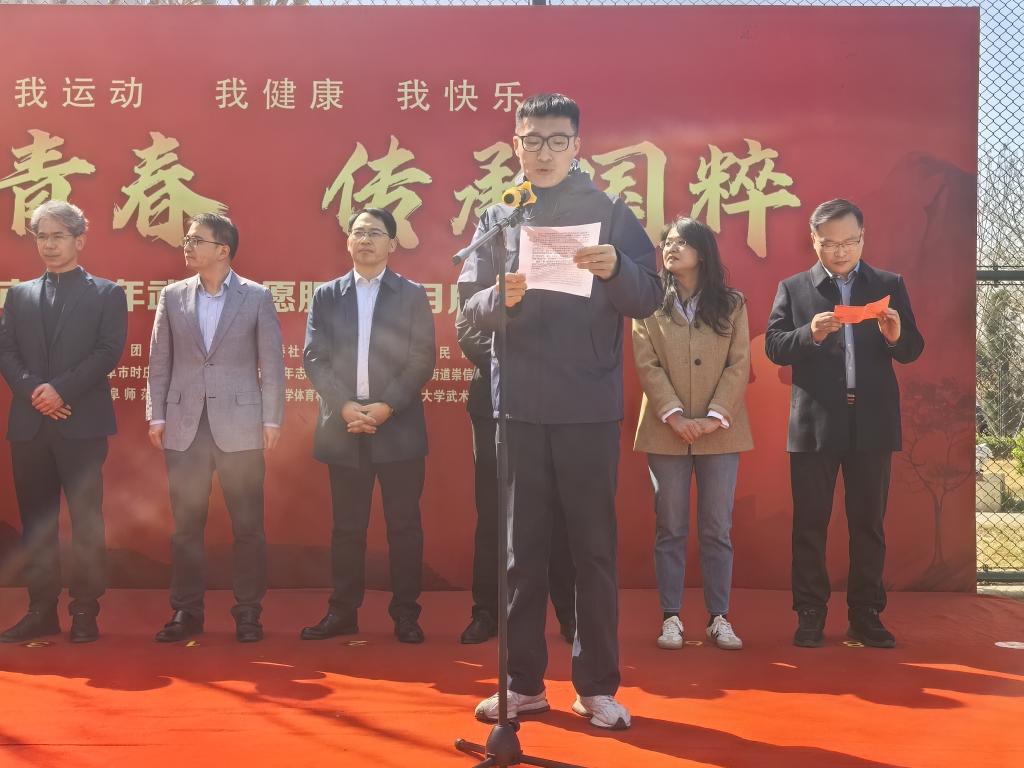 、曲阜师范大学武术协会协办的曲阜市“武动青春 传承国粹”青少年武术志愿服务项目启动仪式,在时庄街道崇信社区广场举行,通过“武术+志愿服务”创新模式,推动传统文化扎根社区,助力青少年全面发展。