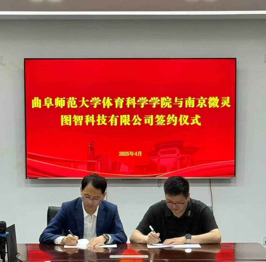 与南京微灵图智科技有限公司举行签约仪式。南京微灵图智科技有限公司创始合伙人刘冰、体育学部党委书记许怀祥、运动人体科学方向的相关老师参加签约仪式。