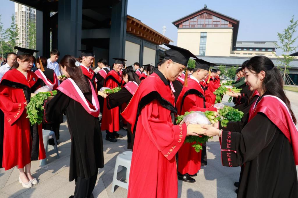 2025届毕业生拍摄毕业合影的现场,一场以古礼致敬师恩的特色仪式,为毕业学子打造了一堂深化传统文化育人的毕业思政课。