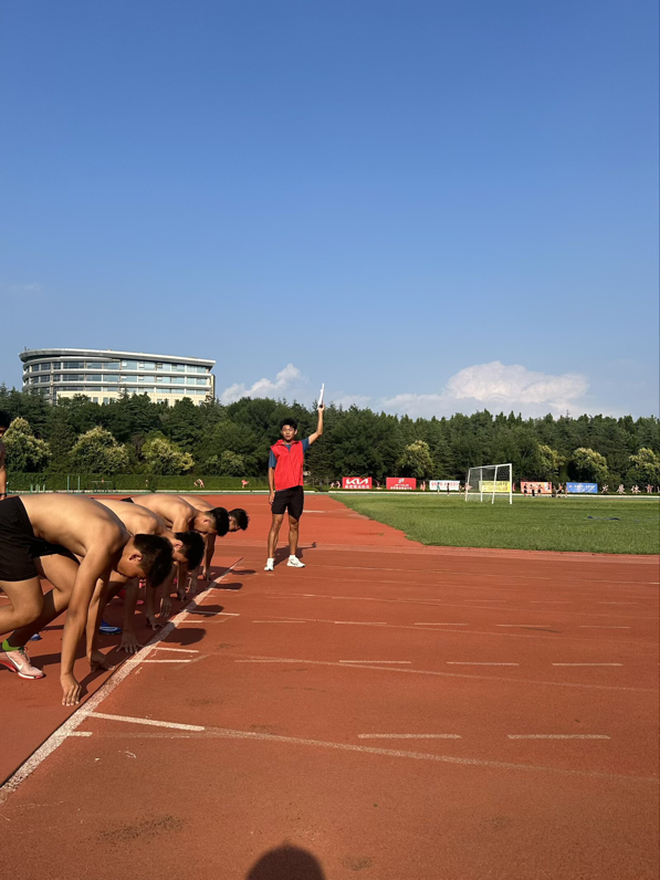 训练从一场认真地热身开始。实践队员带着大家活动关节、动态拉伸,连呼吸节奏都仔细调整着。热身结束后,学生们排成整齐的几排,开始做跑的专门性练习。实践队员时不时停下喊住某个学生:“摆臂别甩太开,贴着身体才省力!”“蹬地时脚踝再发力,步子才能迈得更稳。”他边说边示范,手掌虚虚拢在体侧,脚下发力时脚跟轻快离地,动作拆解得简单明了,学生们跟着调整,原本有些散乱的队列,渐渐跑出了整齐的节奏。