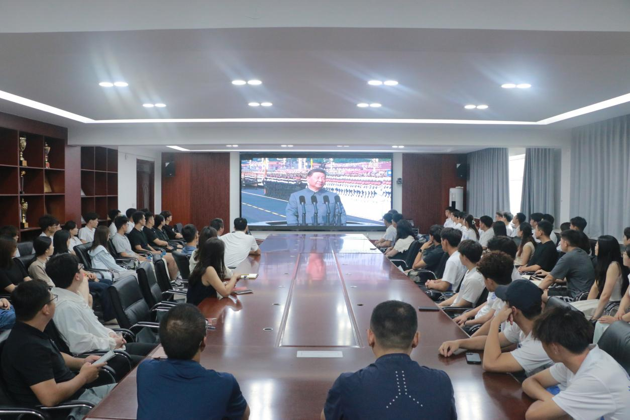会议室里,师生们全神贯注地凝视着屏幕,每当有经典画面出现,便自发地响起阵阵热烈的掌声和欢呼声。大家的眼神中满是自豪与振奋,被中国人民解放军的飒爽英姿和强大的装备实力所深深震撼,也为祖国的繁荣昌盛感到无比骄傲。