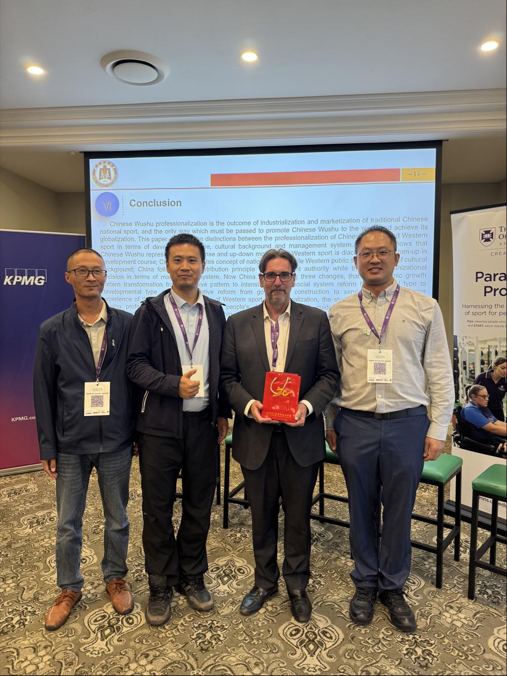 参会期间,董德朋、郭学松、纪成龙三位老师从比较体育学的视角,系统梳理了中国与西方武术职业化的发展路径差异,深入分析了历史背景、文化传统和管理模式对武术职业化进程的影响,并提出具有现实意义的启示建议,引发了与会学者的广泛关注。通过参会与报告,进一步加强了我校与国际知名体育院校和学者的交流合作,为提升我校体育学科的国际影响力奠定了坚实基础。