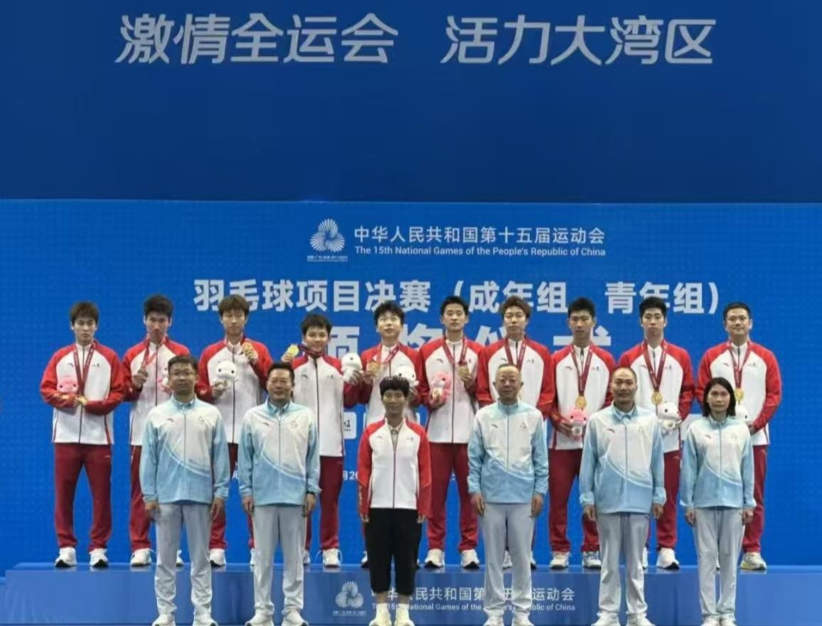 在羽毛球青年男子团体比赛中,2025级学生江首毅作为山东队主力出战,助力队伍以3:1战胜湖北队,摘得金牌。这不仅是山东代表团本届全运会羽毛球首金,也标志着该项目实现历史性突破。