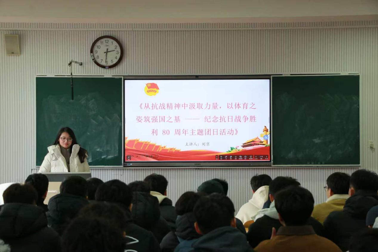 活动伊始,刘京围绕抗战精神的核心内涵展开分享:结合抗战时期体育工作者以赛事凝聚民族斗志、以体能训练助力抗战筹备的历史案例,诠释了“爱国、拼搏、担当”的精神内核。同时紧扣体育专业特色,引导学子思考如何将抗战精神转化为实践动力,从精进体育技能夯实自身实力,到参与全民健身推广传递健康价值,以体育人的姿态践行强国使命。