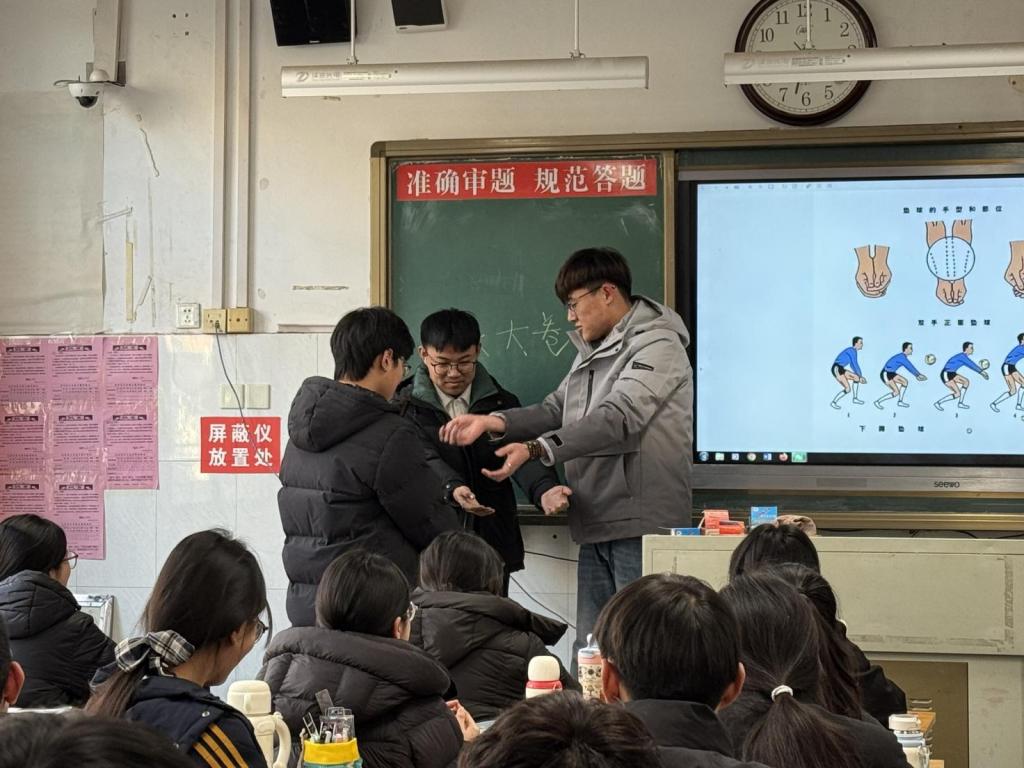 学子们针对排球运动展开指导。从双手垫球的手型摆放、击球部位,到传球时的发力节奏、视线预判,再到扣球前的助跑步伐与起跳时机,学子们结合自身训练经验,进行一对一示范讲解。面对学弟学妹提出的问题他们耐心纠正,讲述和传承排球运动中团队配合的默契与战术协作的魅力。