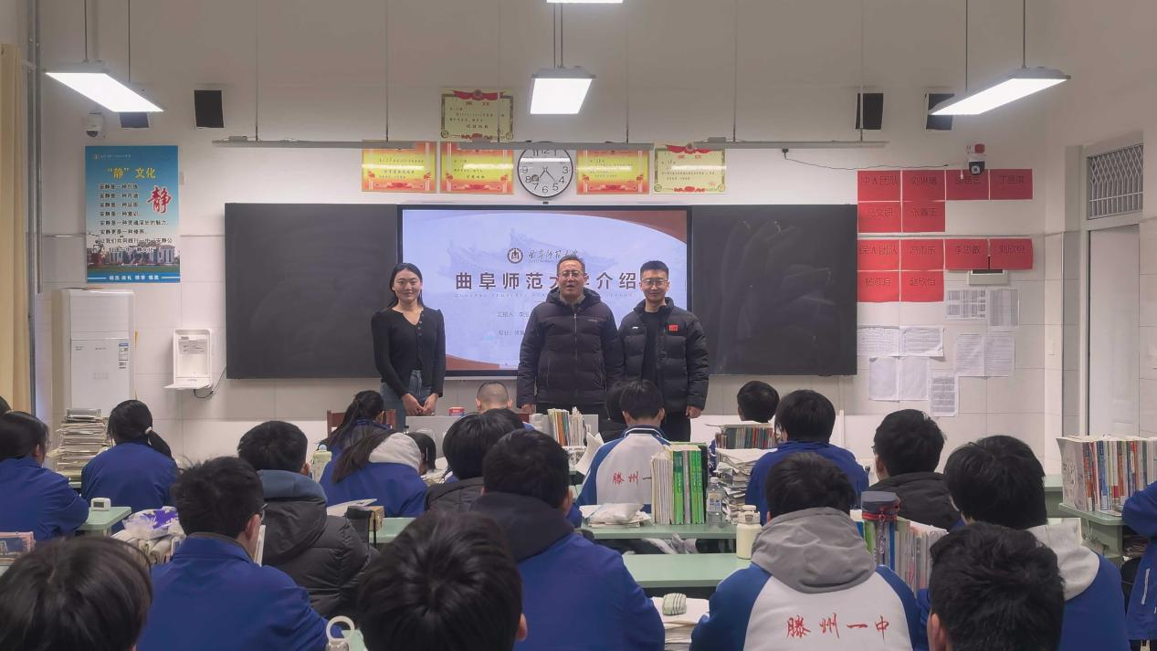“星火燎原”实践队重返滕州市第一中学,开展了一场以“宣传母校、助力高考”为主题的寒假社会实践活动。实践队通过PPT展示、互动答疑等形式,向高三学子全方位介绍曲阜师范大学的办学特色、专业设置、校园生活及报考政策,用亲身经历点燃学弟学妹的大学梦想。